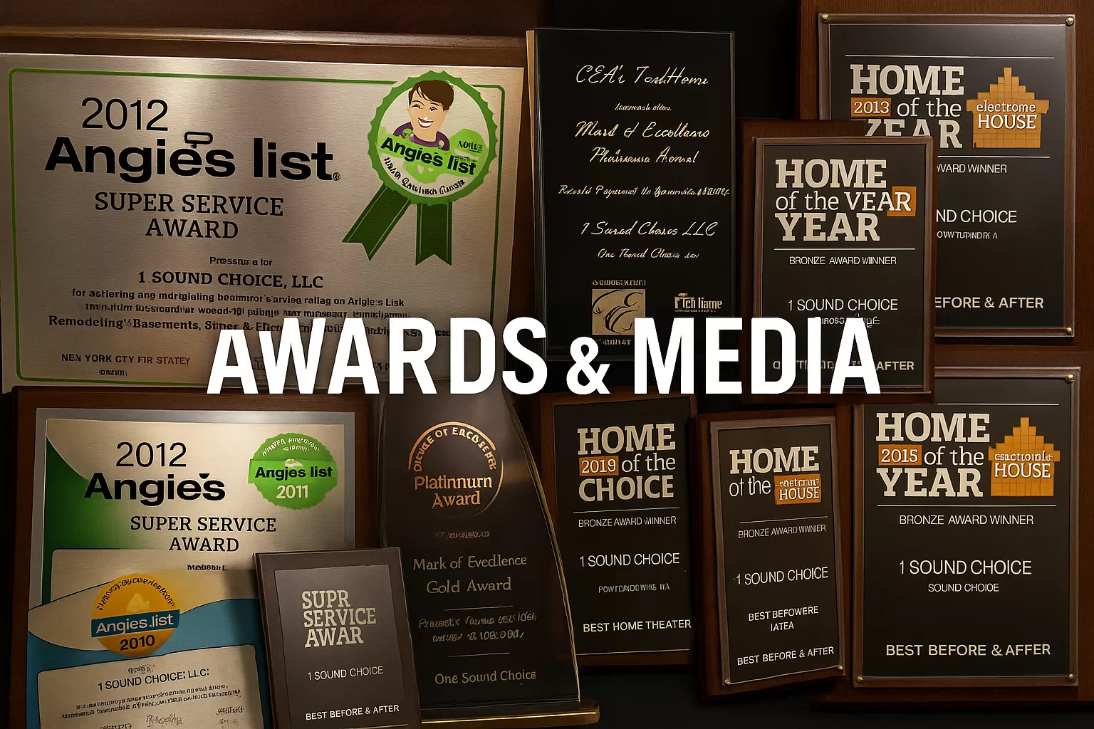 One Sound Choice has been recognized with multiple smart home and home theater awards, including Electronic House “Home of the Year” honors for Best Home Theater and Best Before & After, as well as several CEA/CTA Mark of Excellence Awards for Retrofit Project of the Year and Home Theater/Media Room Project of the Year. These awards highlight the quality of our designs and installations in real homes, including projects here in New Jersey.